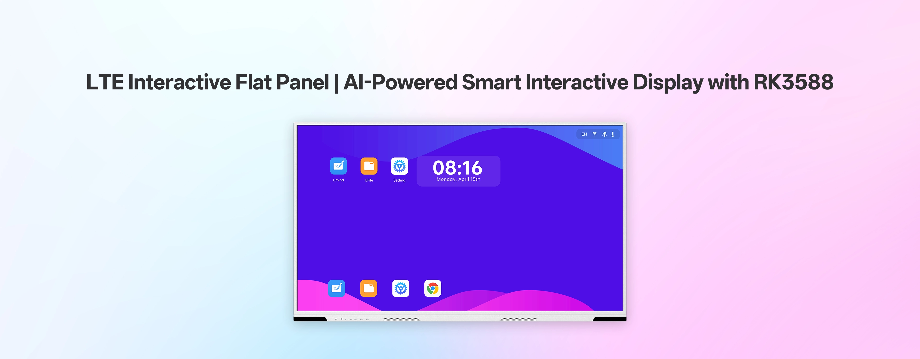 The LTE Interactive Flat Panel is an AI-powered display built on the RK3588 platform with Android 15. Featuring a UHD DLED screen, Mohs 7 anti-glare glass, IR touch, wide-area microphones, built-in AI assistant, whiteboard software, rich interfaces, and remote control support, LTE is ideal for smart education and professional collaboration.
