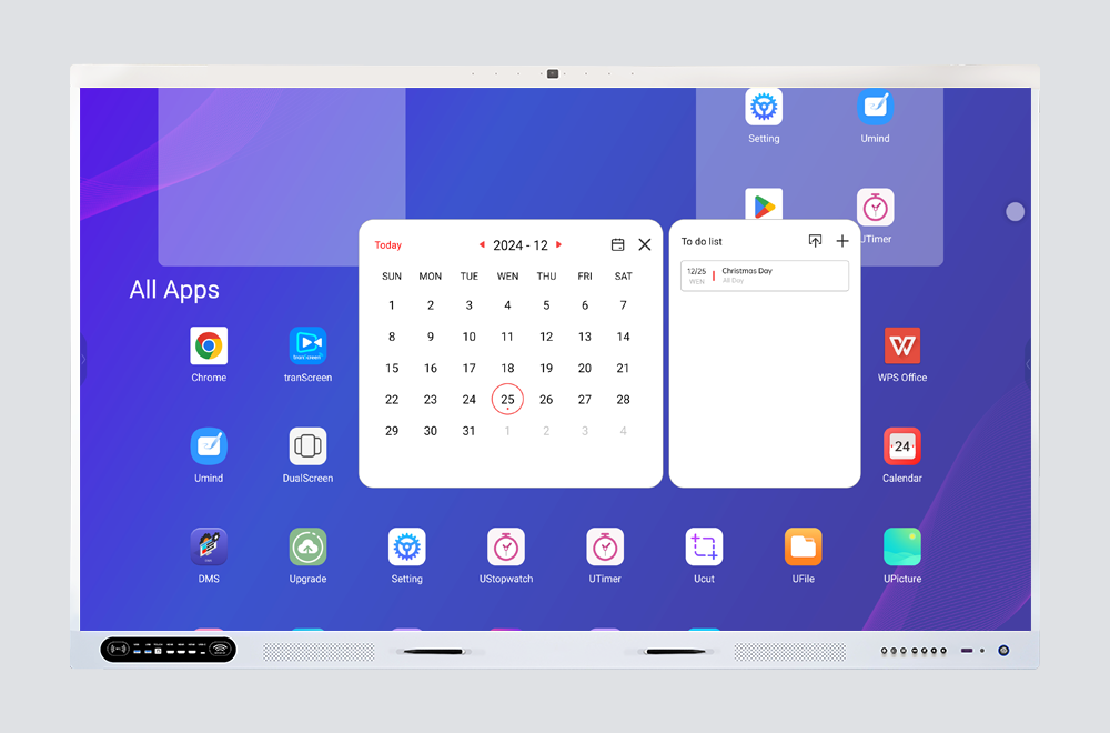 Riotouch smart interactive whiteboard software calendar innovatively integrates precise synchronization of multiple time zones, calibrates global time in milliseconds, and automatically identifies 200+ national holidays to help with efficient planning. Through seamless linkage with UMind whiteboard, it supports AI assistants to create an immersive schedule experience, adapting to office, teaching, and family scenarios, making time management smarter, safer, and more personalized!