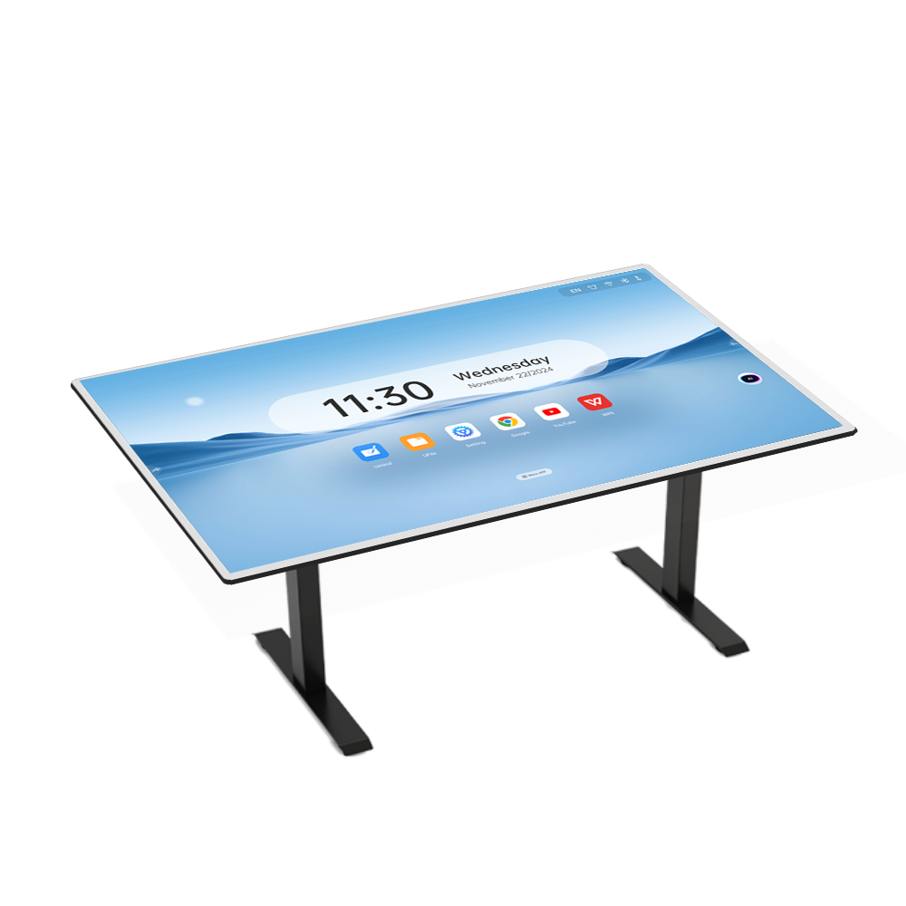 The Riotouch smart lift touch table integrates a 43-inch UHD LED screen, uses Mohs-7 and anti-glare glass, presents 107 million colors and a 178° wide viewing angle. Equipped with the latest Android 14 and RK3588 chips, it provides ultra-fast touch (first response <2ms, continuous <8ms) and advanced gesture control for precise and smooth operation. The intelligent automatic lifting function combined with the narrow frame design not only meets ergonomic requirements, but is also compatible with the Windows system, creating an efficient and intelligent touch experience for modern office, education and collaboration environments.
